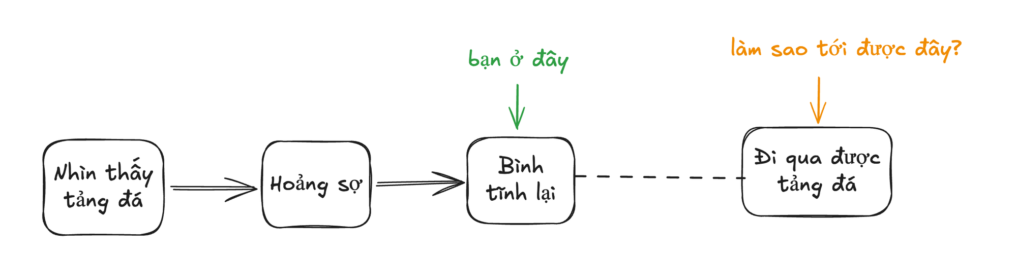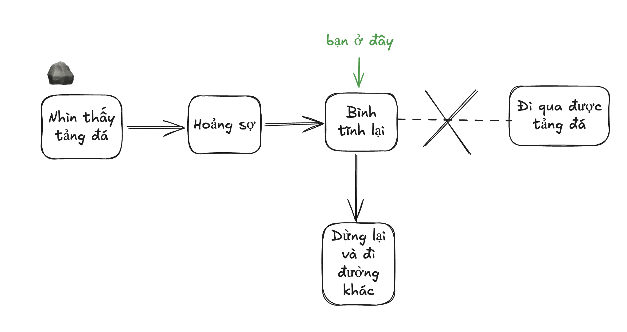 Lần sau gặp lại tảng đá đó, bạn sẽ hoảng sợ trở lại, và xoa diệu bản thân như chưa từng có gì xảy ra, rồi bạn lại chọn đi đường khác cho nó đỡ chông gai hơn.