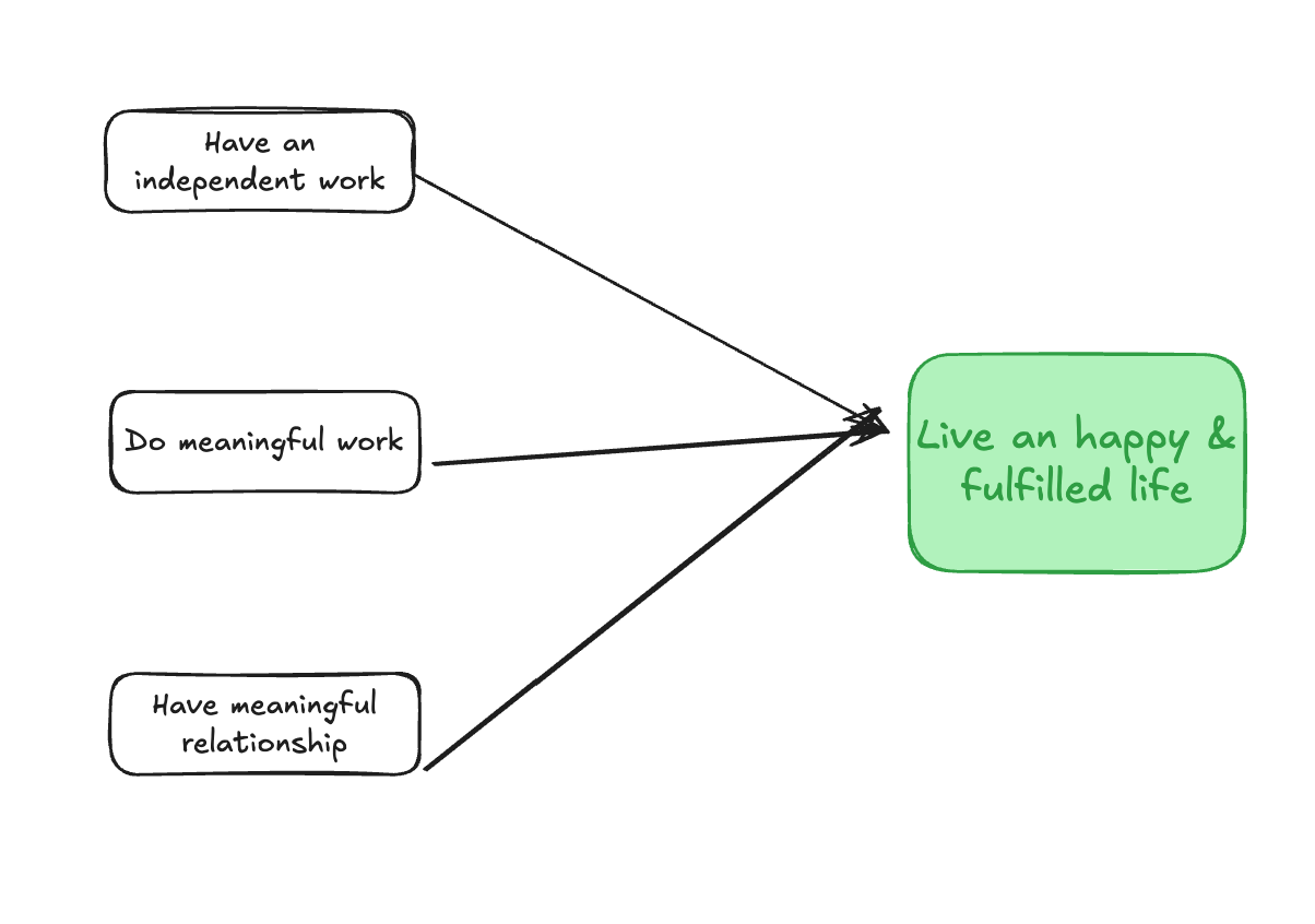Nếu kiếm 1 tỷ đô là ý nghĩa, vậy những gì mình đang cảm giác mỗi ngày, những gì cơ thể mình đang cảm thấy (sức khoẻ), những thứ mình thật sự quan tâm (với mình là viết lách) và những người mình muốn gắn bó (bạn bè / gia đình), etc. không phải là ý nghĩa sao?